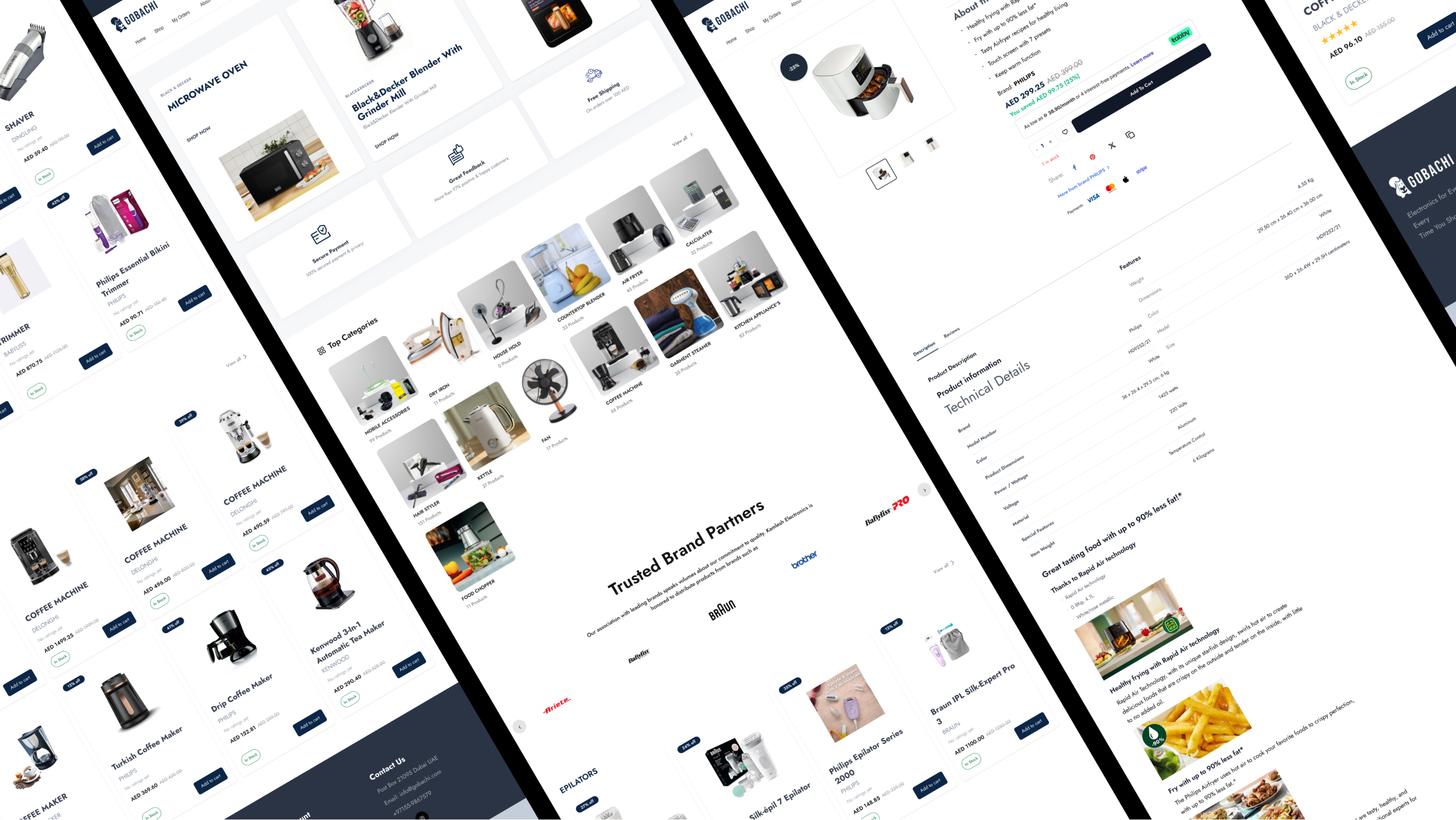 Gobachi is an online retail brand underKamlesh Electronics>, a UAE-based distributor specializing in home appliances and consumer electronics. While Gobachi already existed as a website, it was built on WordPress>, with a bulky, slow interface and outdated UI/UX. Kamlesh Electronics wanted a fully revamped platform that is fast, modern, and user-friendly>, while retaining all core features of their existing site.